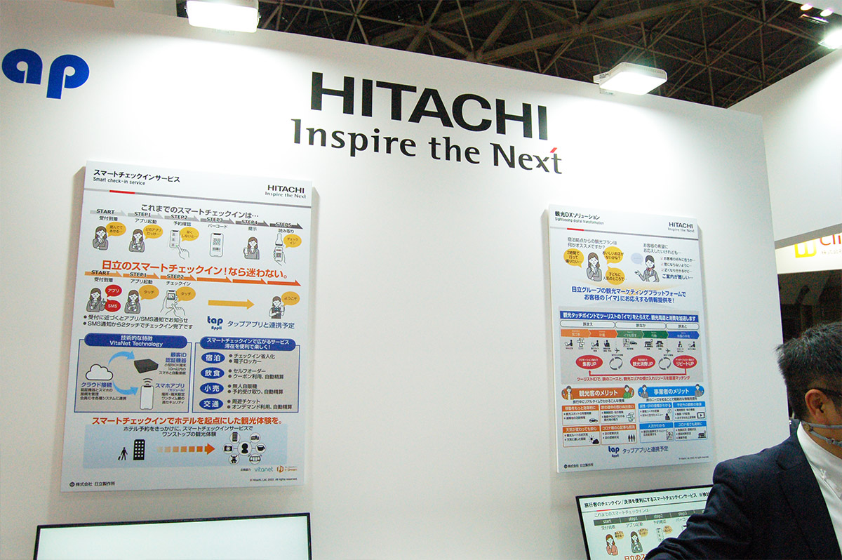 宿泊施設の受付に近づくと、①アプリからのお知らせ→ ②アプリ起動→ ③1タッチでチェックイン完了。その後の施設内のあれこれは連携予定のtapAppliで完結。さらに日立グループの観光マーケティングプラットフォームとの連携(予定)により、旅マエ・旅ナカ・旅アトの総合的なサービス、情報提供により旅行の質を高めてくれます。観光客にも宿泊施設にも大きなメリットをもたらします。